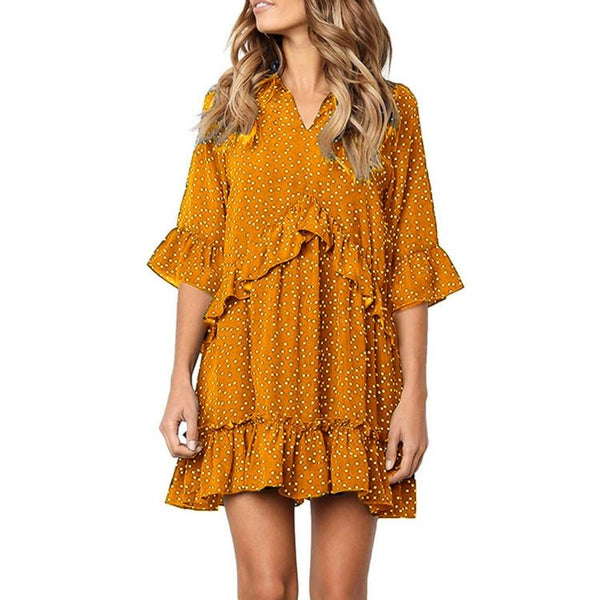 Burst Ruffled Skirt Fashion Dot Dress, Size:L(Yellow)