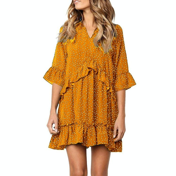 Burst Ruffled Skirt Fashion Dot Dress, Size:XXXL(Yellow)
