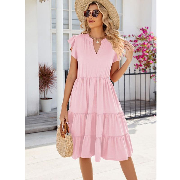 Butterfly Sleeve Layered Hem Dress V-Neck Loose Waist-Cinching Patchwork Dress, Size: XXL(Pink)