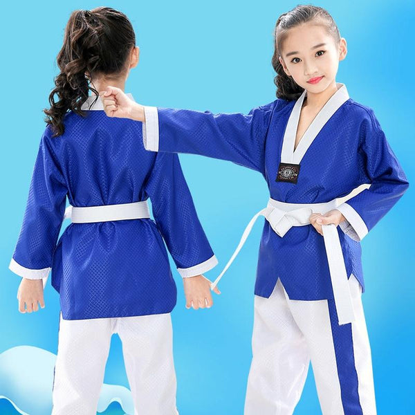 Child Adult Cotton Men And Women Taekwondo Clothing Training Uniforms, Size: 160(Striped Short Sleeves)