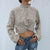 Crop Top Long Sleeve Pullover Turtleneck Leopard Shirt, Size:M(Khaki)