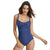 DS02 Ladies Suspender Conservative Triangle One-Piece Swimsuit With Chest Pad, Size: L(Dark Blue)