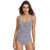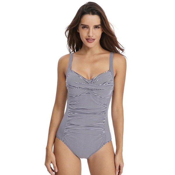 DS02 Ladies Suspender Triangle One-Piece Swimsuit With Chest Pad, Size: L(Navy White Stripe)