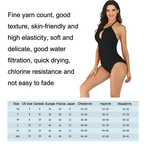 DS40 Ladies Slim and Conservative Halter Neck Swimsuit, Size: XXL(Dumpling Leaf Black)