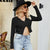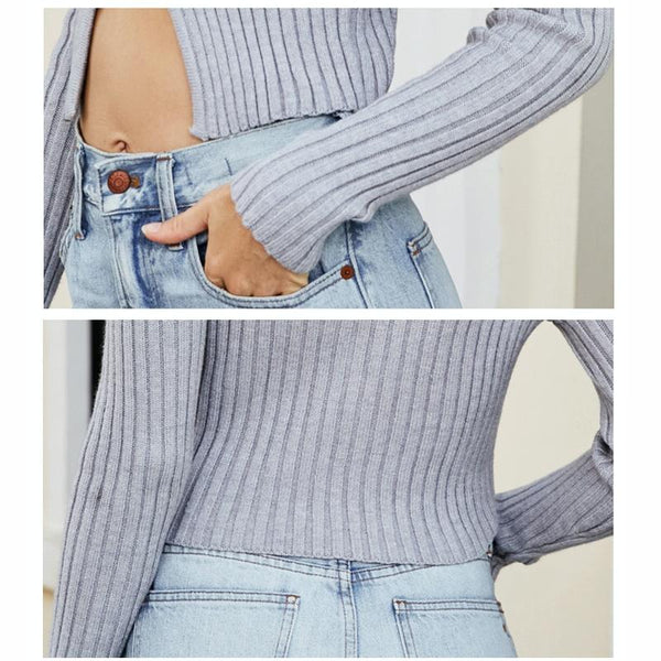 Female Sexy Navel Knit Sweater Slim Sweater Cardigan, Size: XL(Black)
