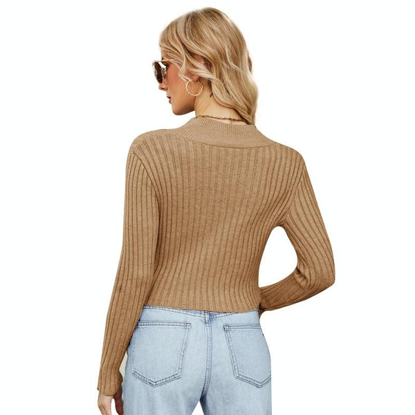Female Sexy Navel Knit Sweater Slim Sweater Cardigan, Size: XL(Brown)