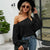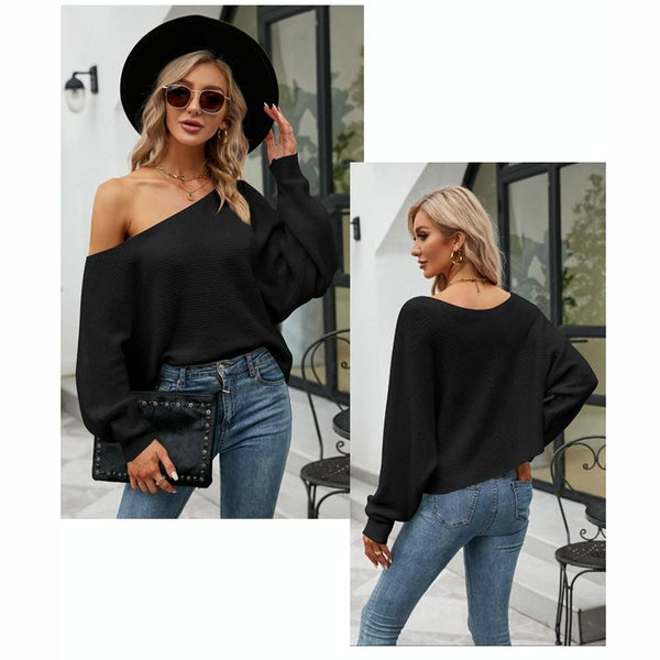 Female Sexy Strapless Knit Shirt Loose Bat Sleeve Knitted Tops, Size: M(Black)