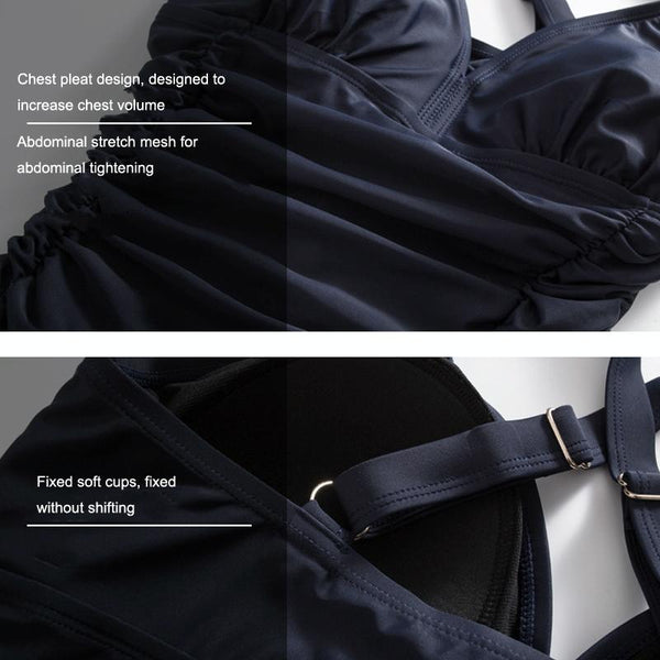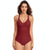 HS18110 Women Belly Cover One-Piece Swimsuit With Chest Pad, Size: L(Red Wine)