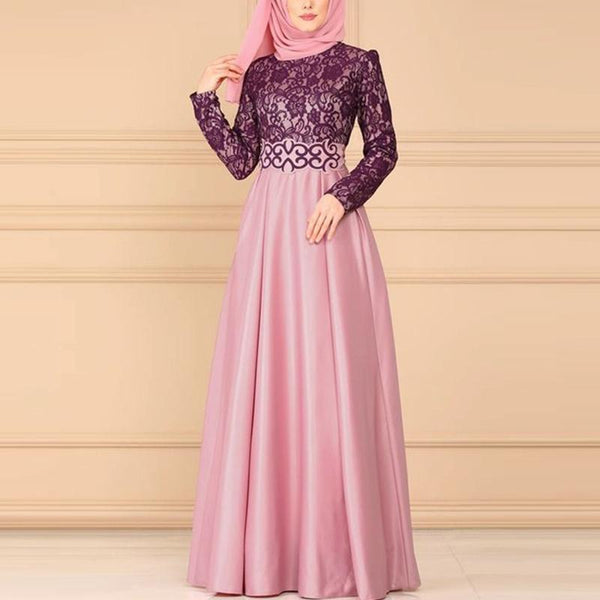 Lace Stitching Retro Large Swing Dress Ethnic Style Long-Sleeved Slim Dress, Size:XXXXXL(Pink)