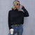 Ladies Loose Off Shoulder Ripped Long-Sleeved Turtleneck Autumn Knitted Sweater, Size:L(Black)
