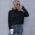Ladies Loose Off Shoulder Ripped Long-Sleeved Turtleneck Autumn Knitted Sweater, Size:M(Black)