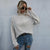 Ladies Loose Off Shoulder Ripped Long-Sleeved Turtleneck Autumn Knitted Sweater, Size:S(Beige)