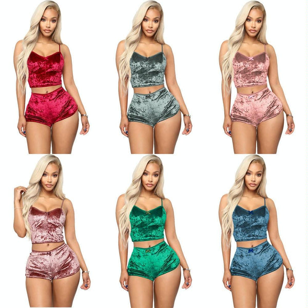 Ladies Sexy Velvet Crop Tops Pants Set Underwear Pajamas, Size: XL(Red)