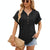 Ladies Summer Hooded Button Loose Short Sleeve T-Shirt Blouse, Size: M(Black)