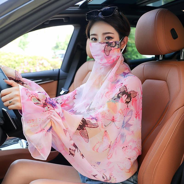 Ladies Summer Sun Shawl Riding Long Sleeve Cape Veil All-In-One Sun Protective Clothing, Style: Pink Butterfly