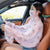 Ladies Summer Sun Shawl Riding Long Sleeve Cape Veil All-In-One Sun Protective Clothing, Style: Pink Cherry Blossom