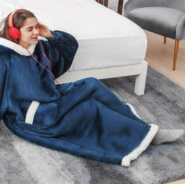 1. This portable blanket pullover keeps you warm and cozy while you sit at home, play video games, and work on your laptop.