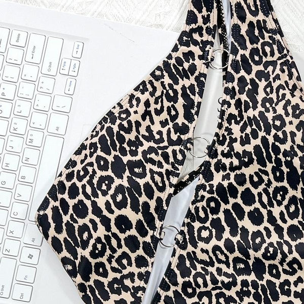 1. This leopard print hollow strappy one-piece swimsuit features a unique asymmetrical one-shoulder design to show off your fashion sense. Bold leopard print and delicate cutouts create the perfect blend of sexiness and elegance, ensuring you'll be the center of attention at the beach or pool party.