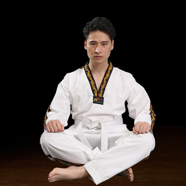 Men And Women Child Adult Cotton Taekwondo Clothing Training Uniforms, Size: 130(Dragon White)