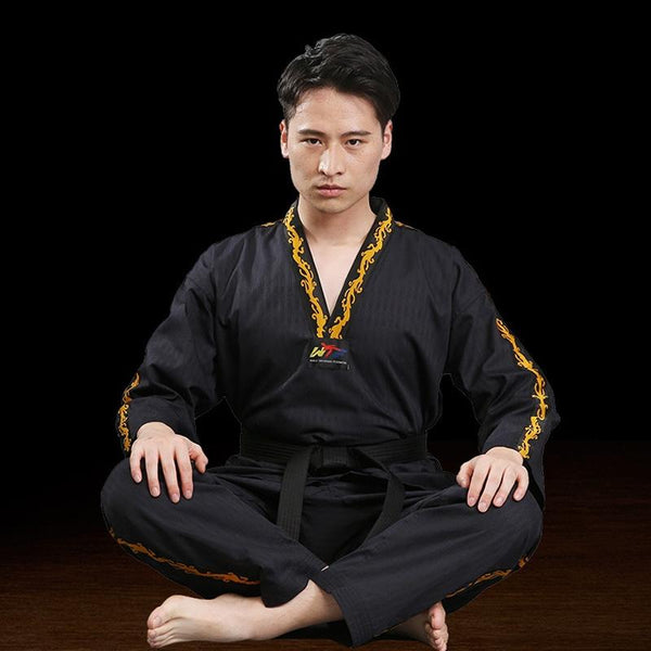 Men And Women Child Adult Cotton Taekwondo Clothing Training Uniforms, Size: 180(DragonBlack)