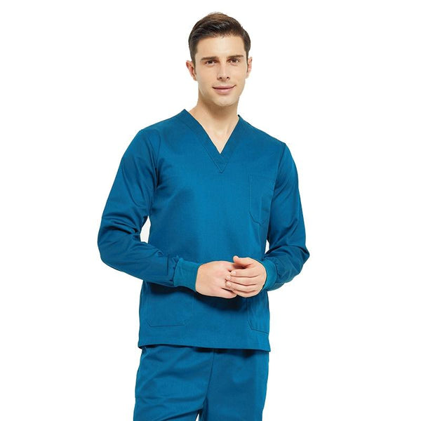 Men Scrub Pet Dental Work Clothes Long-sleeved Top + Pants Set, Size: XXL(Peacock Blue)