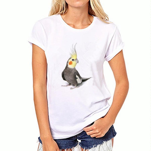 Parrot Pattern Short-sleeved T-shirt for Woman, Size: L(White)