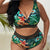 Plus-size Sexy Printed High Waist Two Piece Bikini Swimsuit, Size:XXXL(Green)