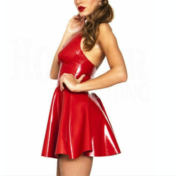 PVC Imitation Leather Dress Patent Leather Skirt Night Show Costume, Size:S(Red)
