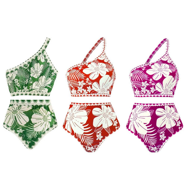 Retro Split Sexy One-Shoulder Swimsuit Chiffon Beach Skirt Swimsuit, Size: M(Purple Suit)