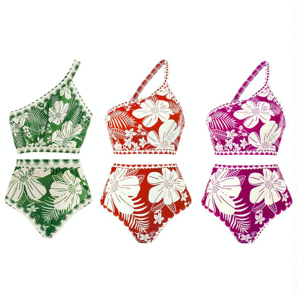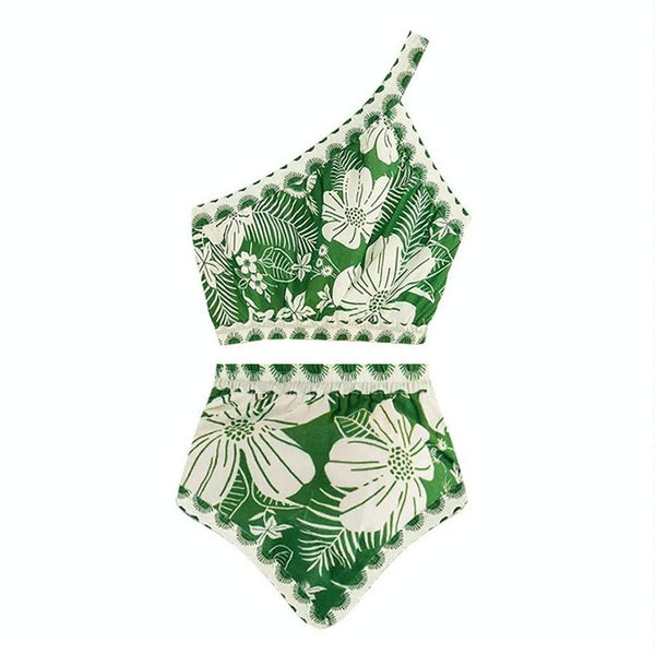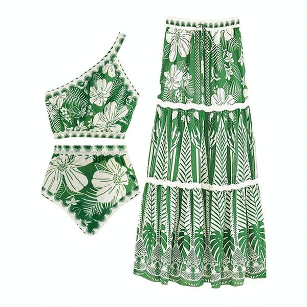 Retro Split Sexy One-Shoulder Swimsuit Chiffon Beach Skirt Swimsuit, Size: S(Green Suit)