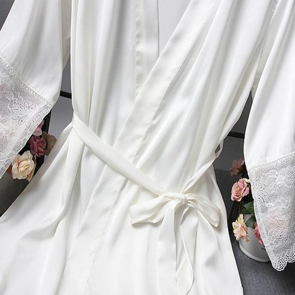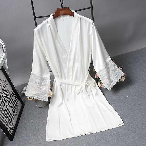 RobesElegant Sleepwear Sexy Lace Women Dressing Kimono Silk Bath Robe, Size:L(White)