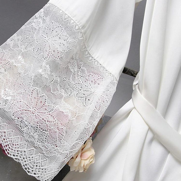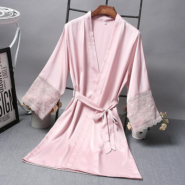 RobesElegant Sleepwear Sexy Lace Women Dressing Kimono Silk Bath Robe, Size:XXL(Pink)
