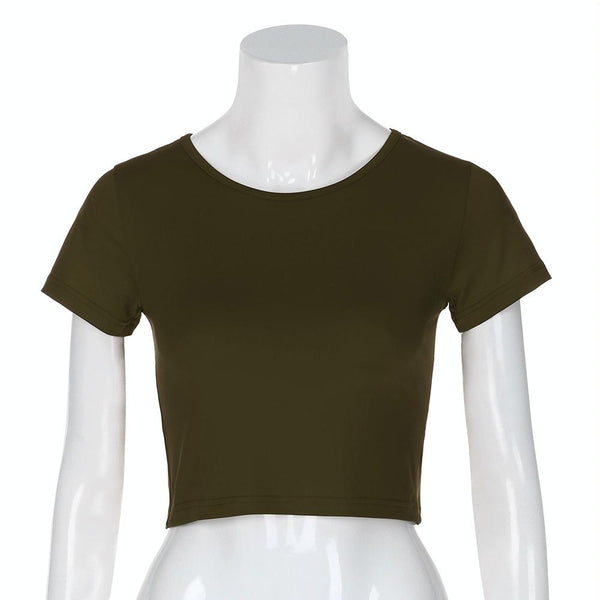 Round Neck Exposed Navel Shirt Body Short Sleeve T-shirt, Size: M(Army Green)