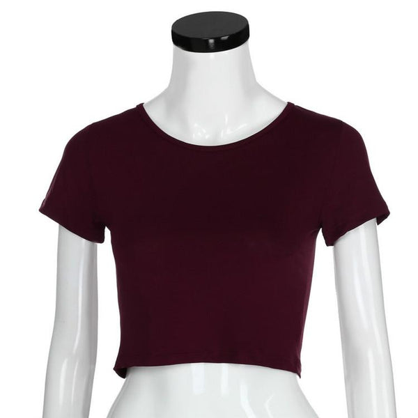Round Neck Exposed Navel Shirt Body Short Sleeve T-shirt, Size: M(Fuchsia)