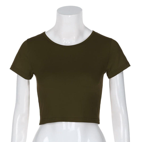 Round Neck Exposed Navel Shirt Body Short Sleeve T-shirt, Size: XL(Army Green)