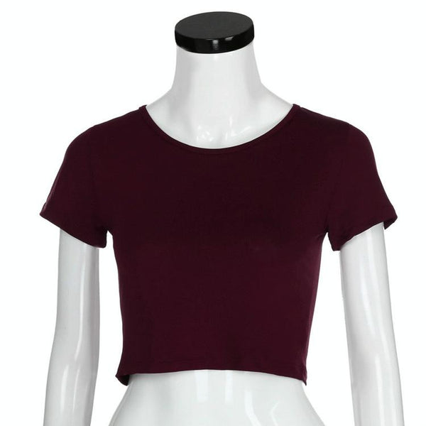 Round Neck Exposed Navel Shirt Body Short Sleeve T-shirt, Size: XL(Fuchsia)