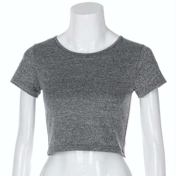 Round Neck Exposed Navel Shirt Body Short Sleeve T-shirt, Size: XL(Gray)