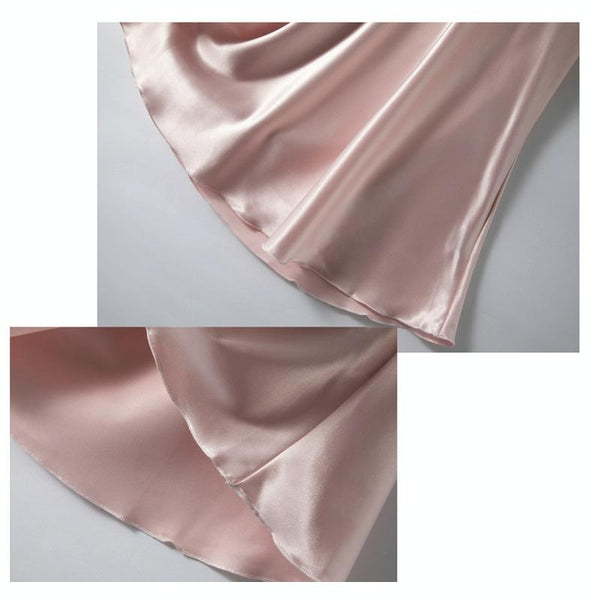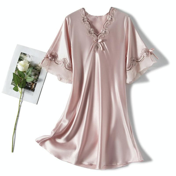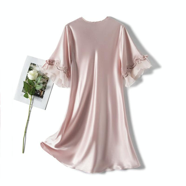 Scalloped Edge V-Neck Mid Sleeve Loose Women Nightdress, Size:L(Pink)
