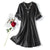 Scalloped Edge V-Neck Mid Sleeve Loose Women Nightdress, Size:S(Black)