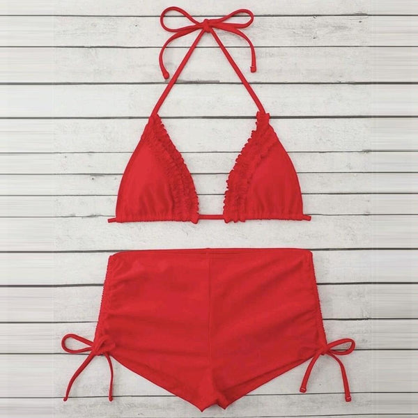 2. Bikinis featuring a smooth sexy adjustable triangle cups, halter neck top, adjustable elastic straps with a tie back closure.