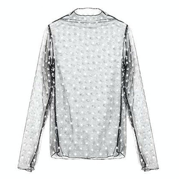 Sexy Mesh High Collar Long Sleeve Bottoming Blouse, Size:One Size( Pure Mesh)