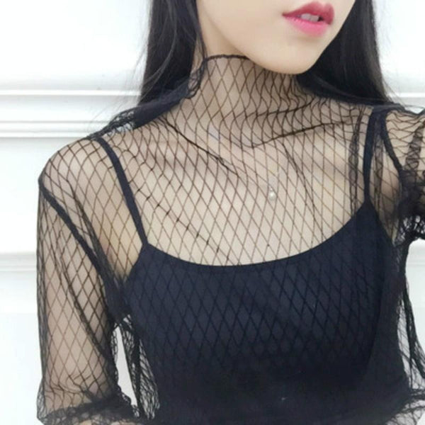 Sexy Mesh High Collar Long Sleeve Bottoming Blouse, Size:One Size(Diamond)