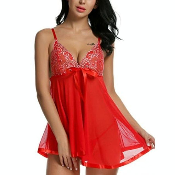 Sexy Perspective Mesh Girth Nightdress, Size:L(Dark Red)