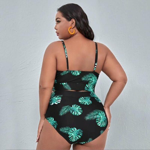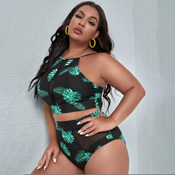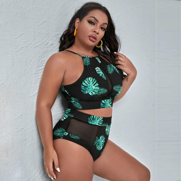 Sexy Plus Size Printed Split High Waist Bikini Swimsuit, Size:XL(As Show)
