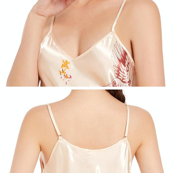 Sexy V-neck Crane Pattern Short Sling Skirt Pajamas, Size:S(White)