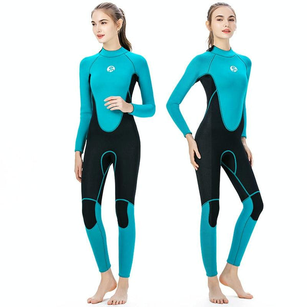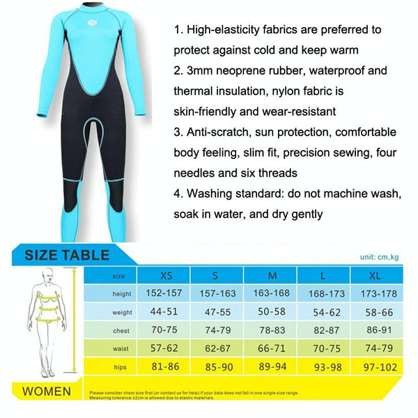 SLINX Women Slim Sun Protection Warm Wetsuit Long -Sleeved Full Body Snorkeling Supreme Surfing, Size: XS(Lake Green)