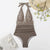 Summer One-piece Backless Lace-Up Ladies Swimsuit Floral-print Halter Bikini, Size: L(Leopard+Coffee)