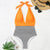 Summer One-piece Backless Lace-Up Ladies Swimsuit Floral-print Halter Bikini, Size: S(Orange+Oblique Strip)