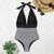 Summer One-piece Backless Lace-Up Ladies Swimsuit Floral-print Halter Bikini, Size: XL(Black+Oblique Strip)