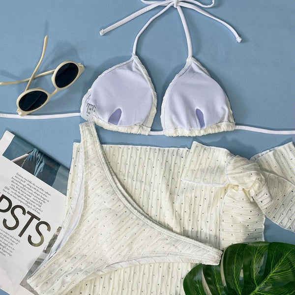 Summer Sexy Halter Bikini Three-piece Suit Solid Lace-up Swimsuit with Breasts Pad, Size: L(Black)